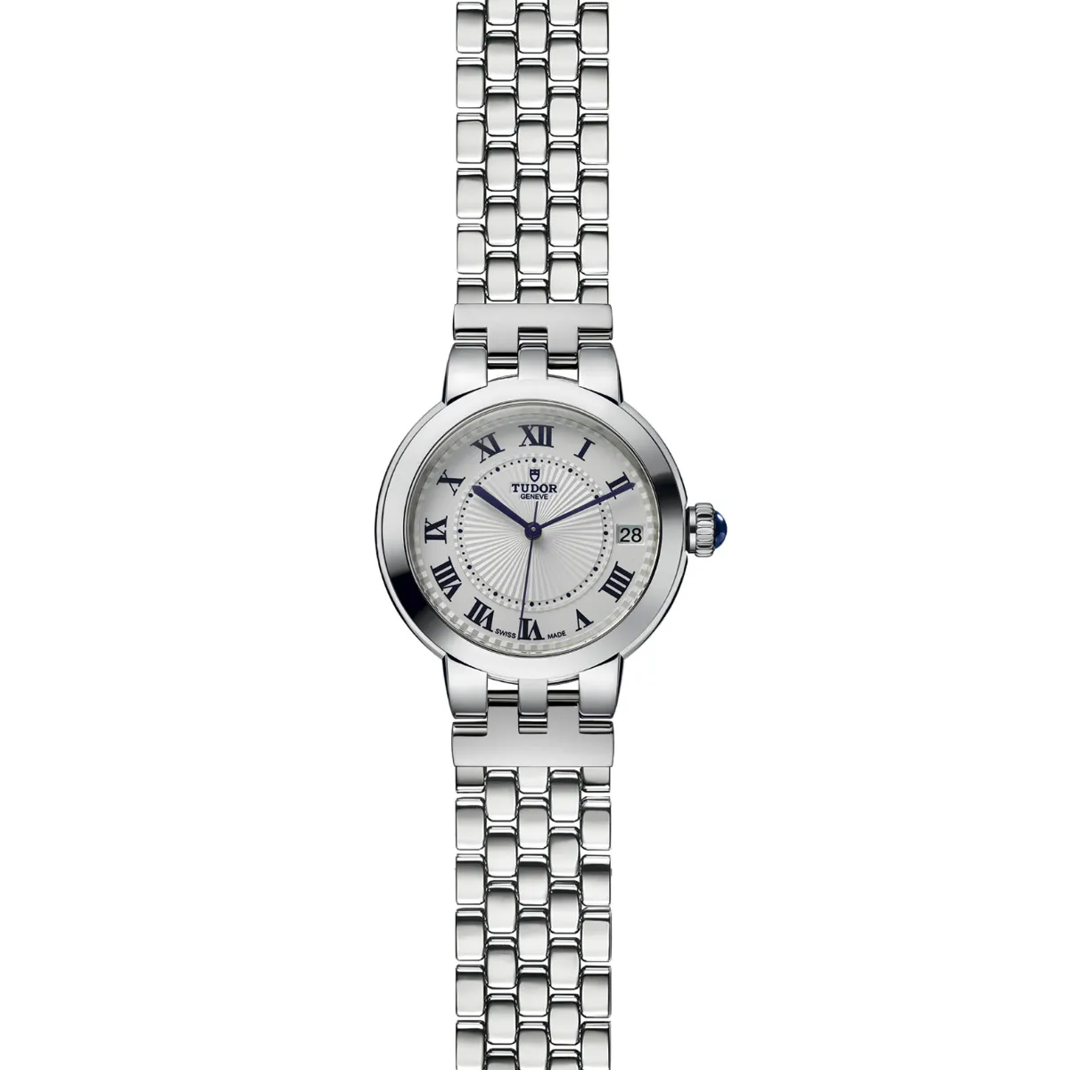 36mm steel case, Opaline and blue dial