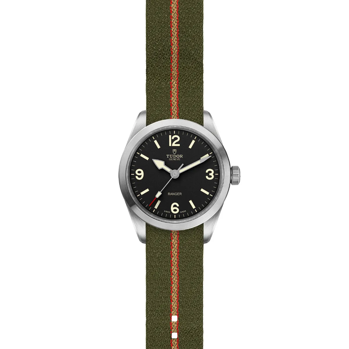 39mm steel case, Black dial